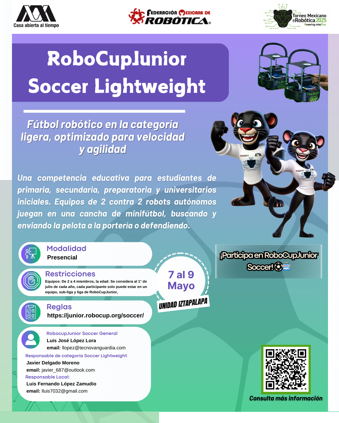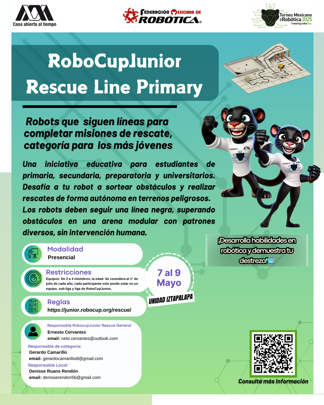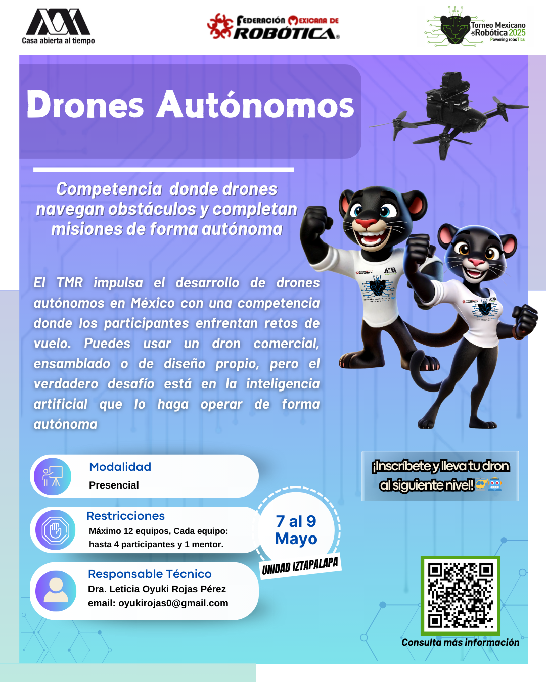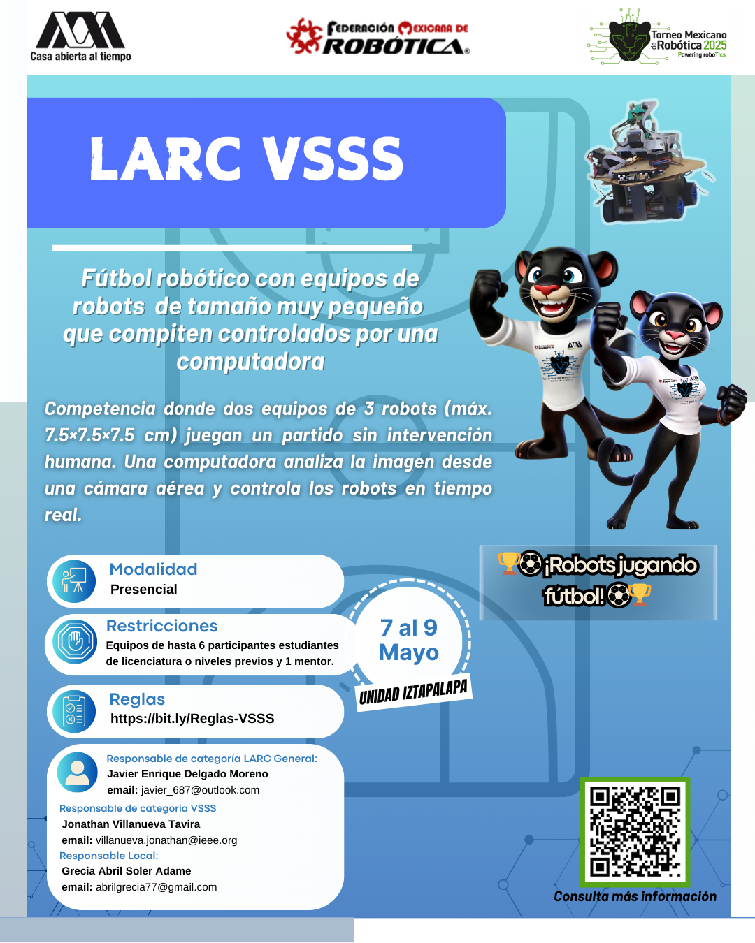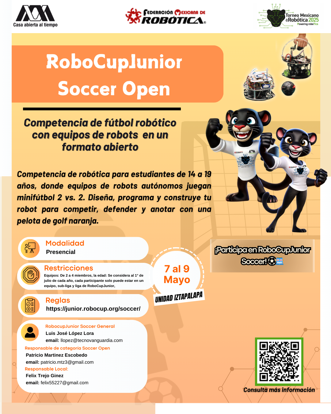 La Universidad Autónoma Metropolitana, Unidad Iztapalapa, y la Federación Mexicana de Robótica expresan su más sincero agradecimiento al equipo que hizo posible la realización del XVI Torneo Mexicano de Robótica. Su compromiso, esfuerzo y dedicación fueron clave para el éxito del evento y para seguir impulsando el desarrollo de la robótica en nuestro país. ¡Gracias por hacerlo posible!