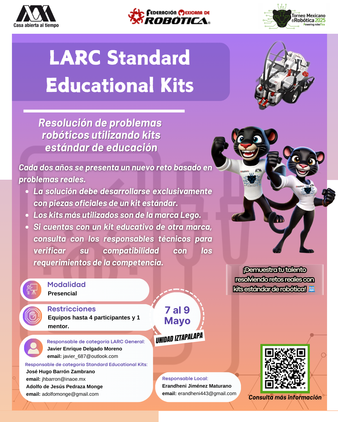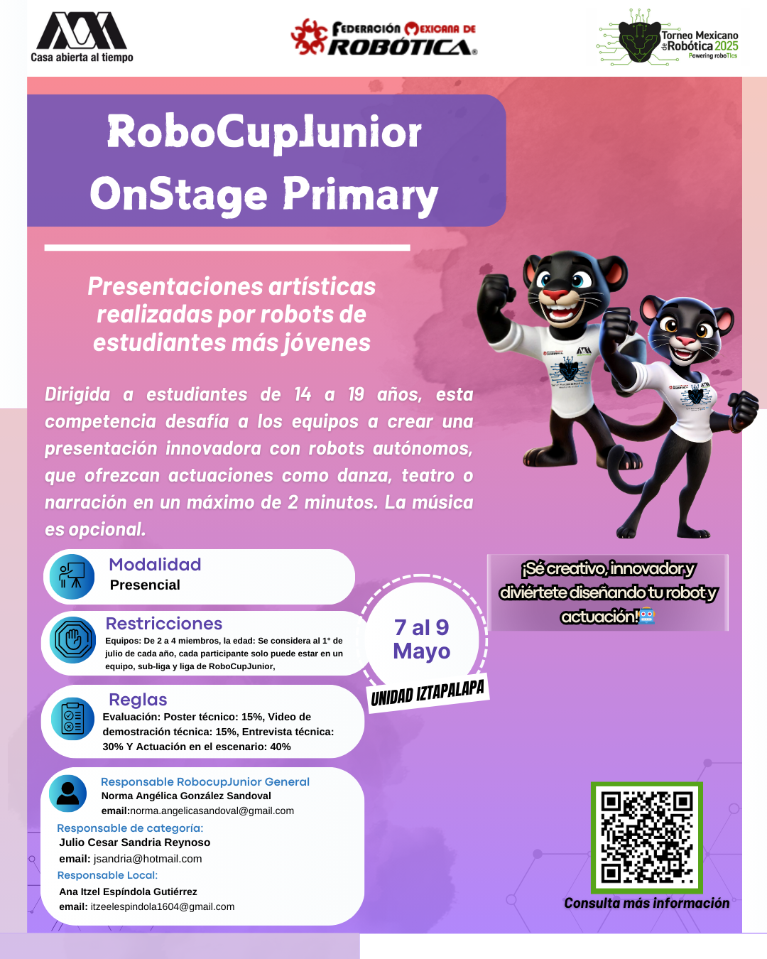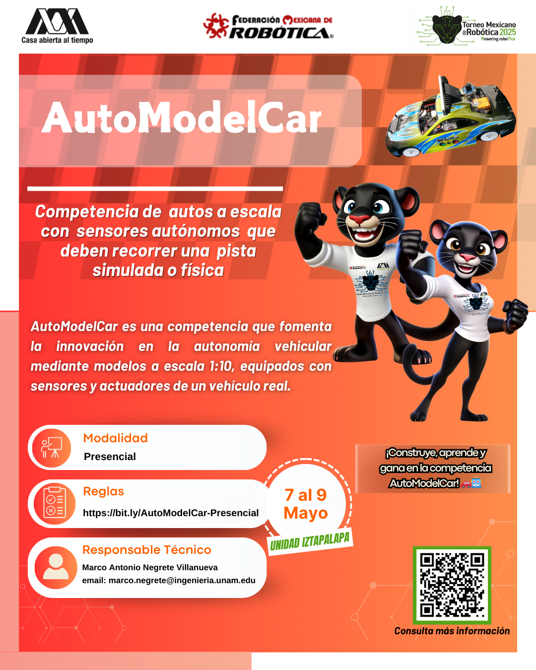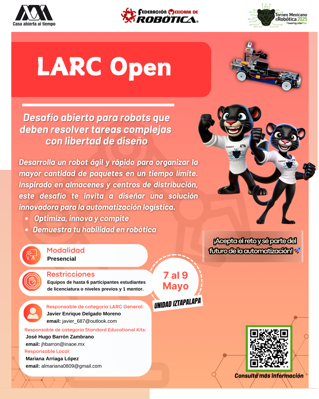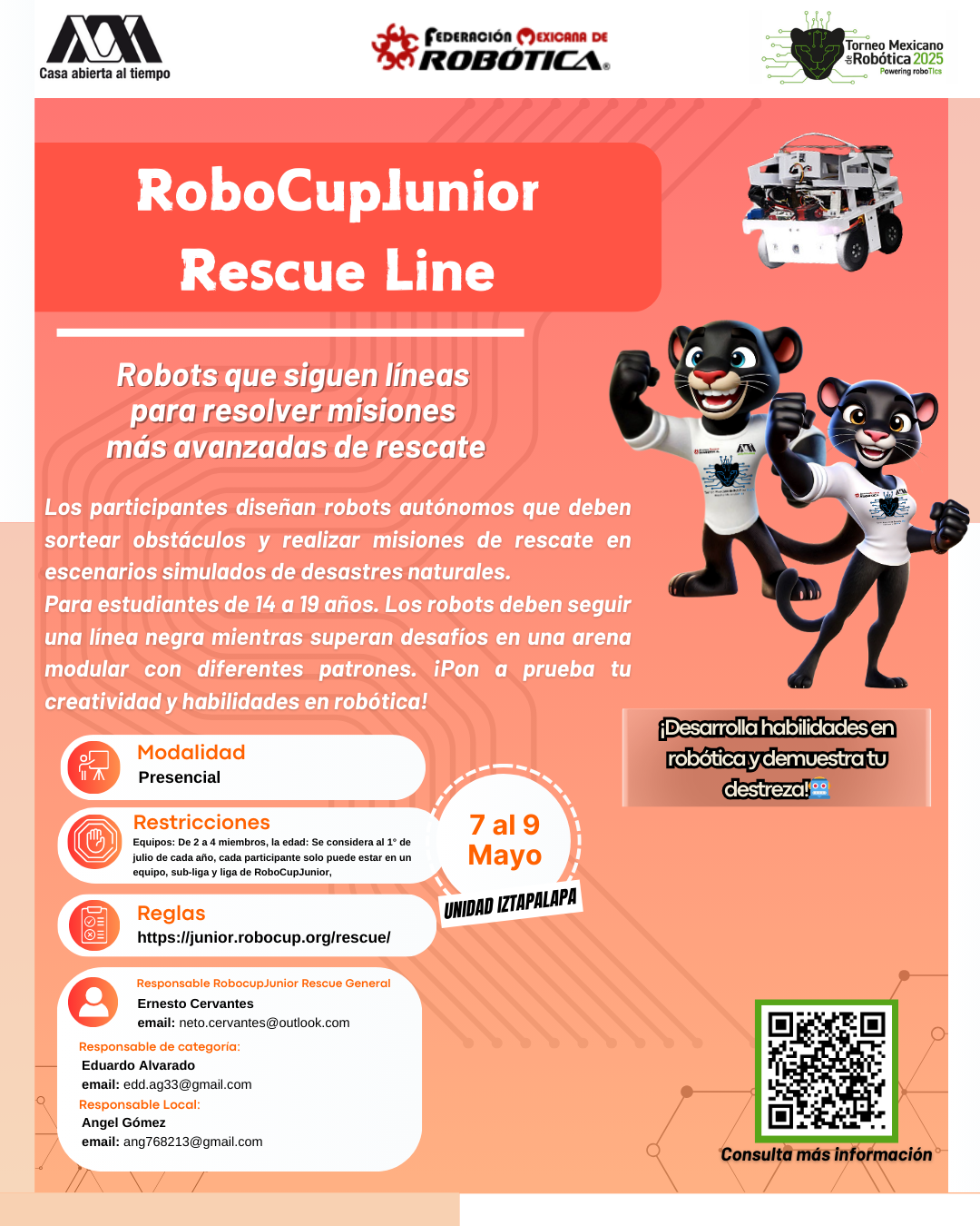 La Universidad Autónoma Metropolitana, Unidad Iztapalapa, y la Federación Mexicana de Robótica expresan su más sincero agradecimiento al equipo que hizo posible la realización del XVI Torneo Mexicano de Robótica. Su compromiso, esfuerzo y dedicación fueron clave para el éxito del evento y para seguir impulsando el desarrollo de la robótica en nuestro país. ¡Gracias por hacerlo posible!