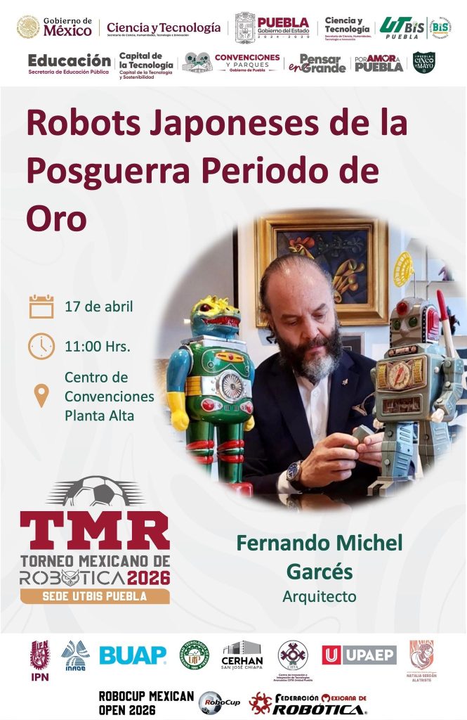 11:00 – 18:00Competencias.11:00 – 12:00Ponencia Magistral Arq. Fernando Michel, “Robots Japoneses de la Posguerra Periodo de Oro.”