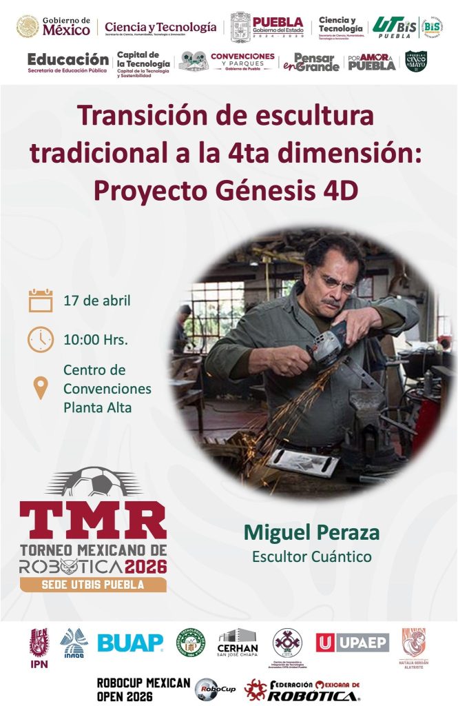 10:00Inicio de competencias.10:00 – 10:55Ponencia Magistral Escultor Miguel Peraza “Transición de escultura tradicional a la 4.a dimensión: Proyecto Génesis 4D.”